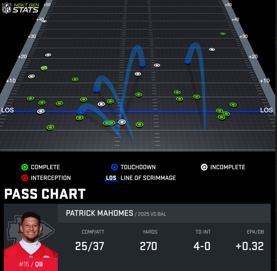 Without Xavier Worthy in the lineup, the Chiefs' offense reverted to its previous condensed struggles. There’s only so much an offense can do when the 2025 version of Hollywood Brown is the field-stretcher. Worthy hasn’t been a consistent vertical threat during his career, but his presence helped open up the offense against a struggling Baltimore secondary.